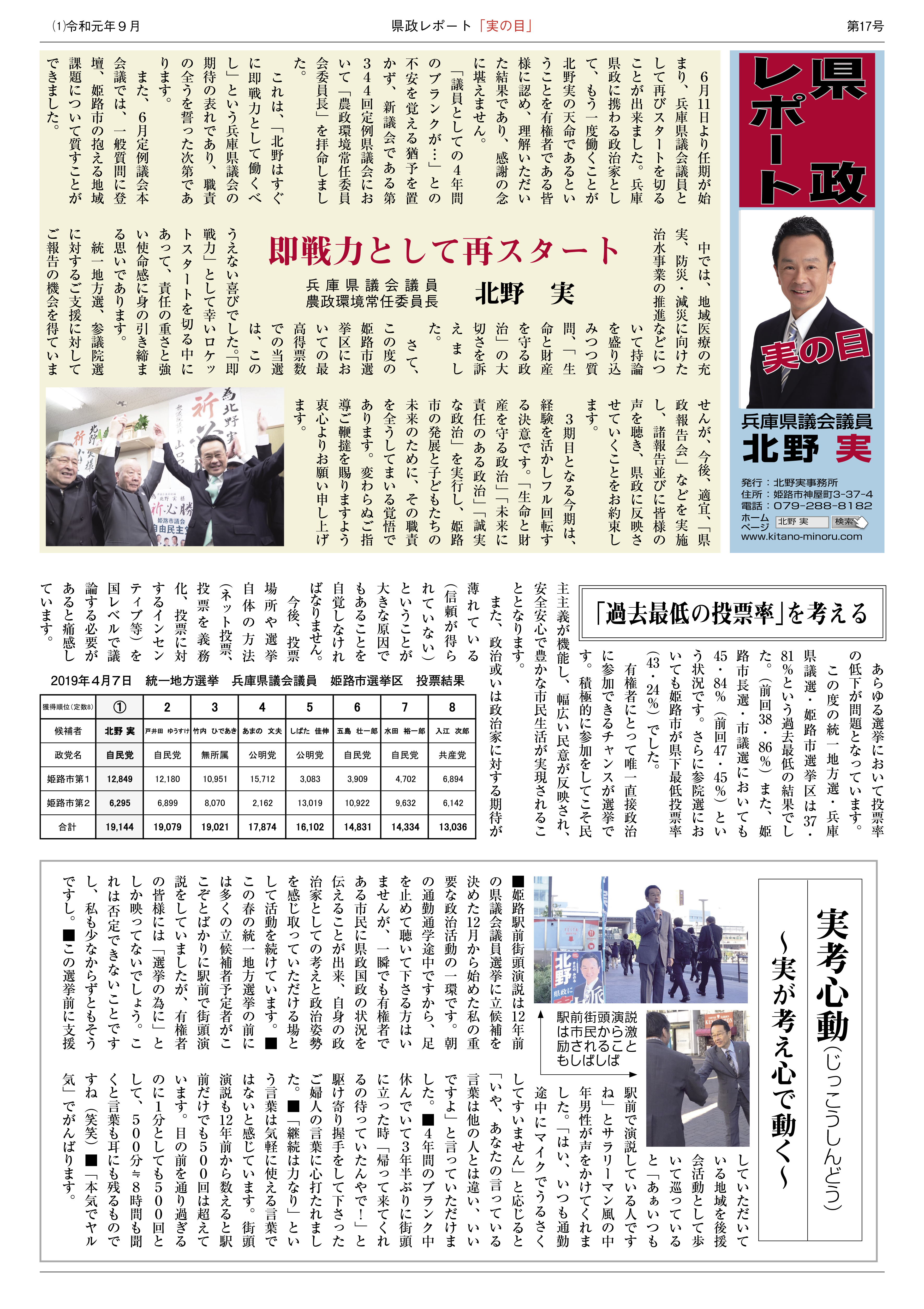 県政レポート 『実の目』 №17発行2019年10月15日