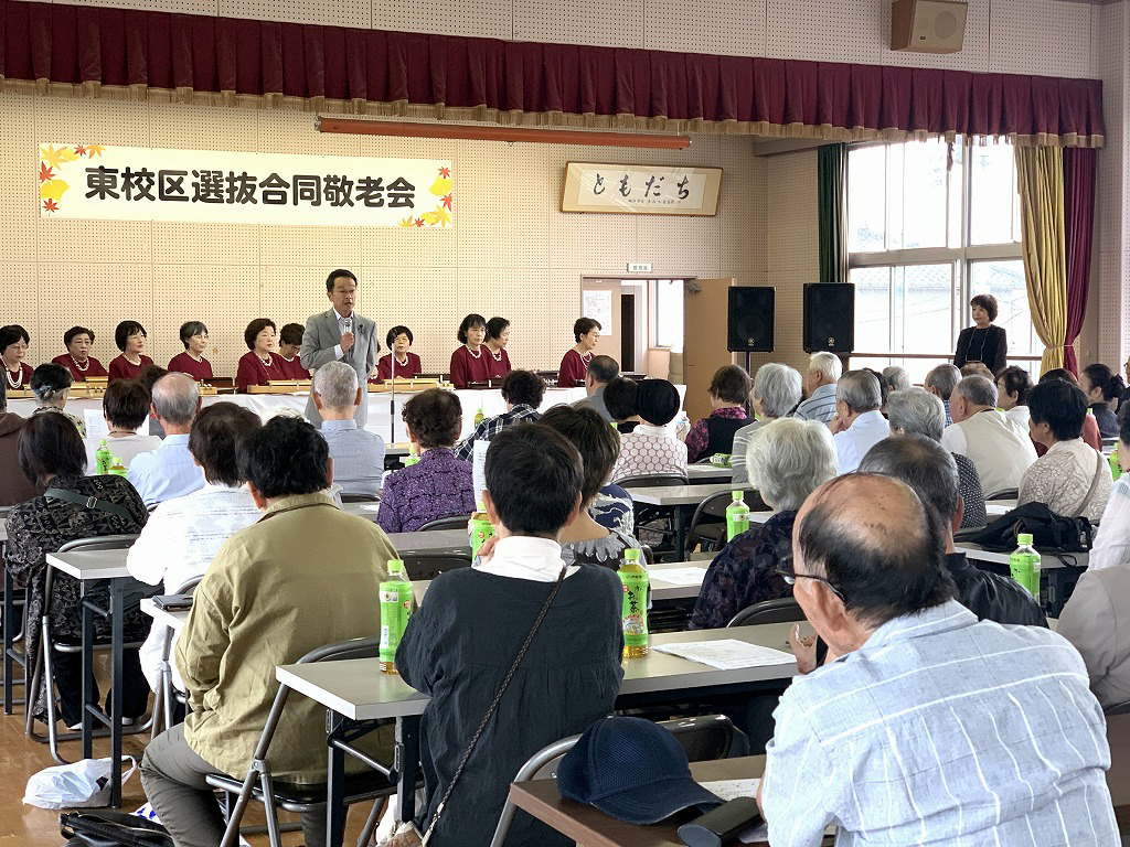 それを基金に東支部では校区選抜合同敬老会をひがし交流センターで開催。