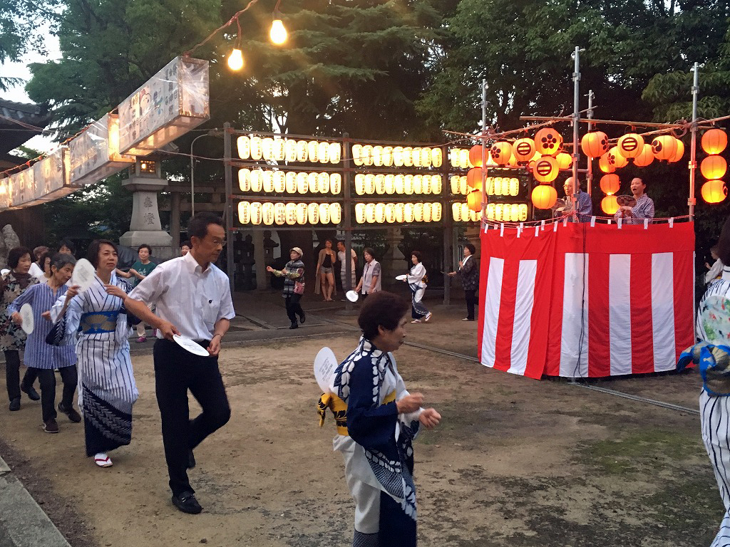 氏子内ご婦人有志による天神踊りが行われ夫婦で盆踊り。