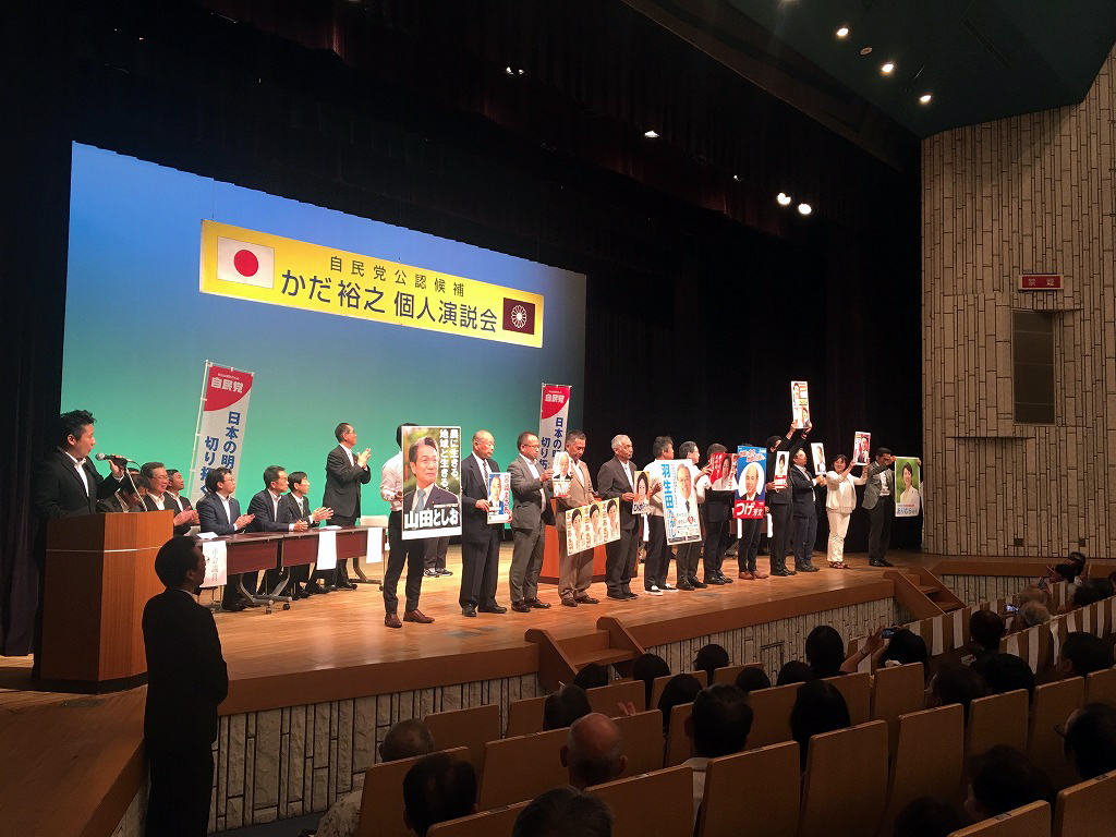 参議院兵庫選挙区、自民党公認候「かだ裕之」候補の姫路自民党個人演説会を開催。